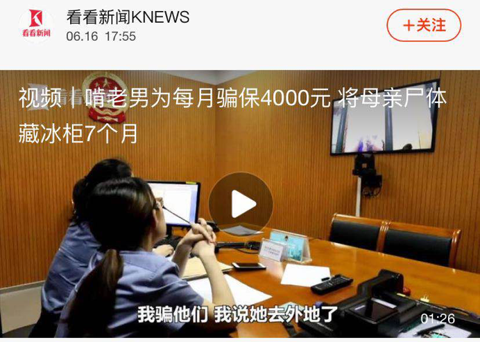 他把母亲的尸体藏于冰柜,继续每月领取4000元的养老金,浑噩度日。