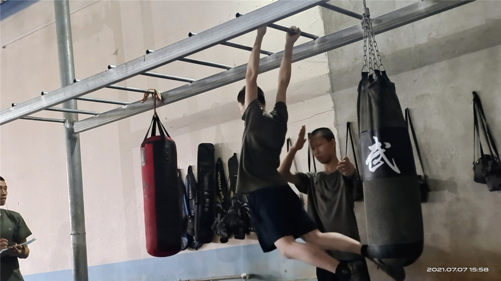 引体向上是最难的一关。学员小炜做了6个之后体力不支,准备放弃的时候,小伙伴们齐声帮他数数,鼓劲“七-八-....”,最后他提上劲做了17个,通过了考核,大家报以热烈掌声以示祝贺。