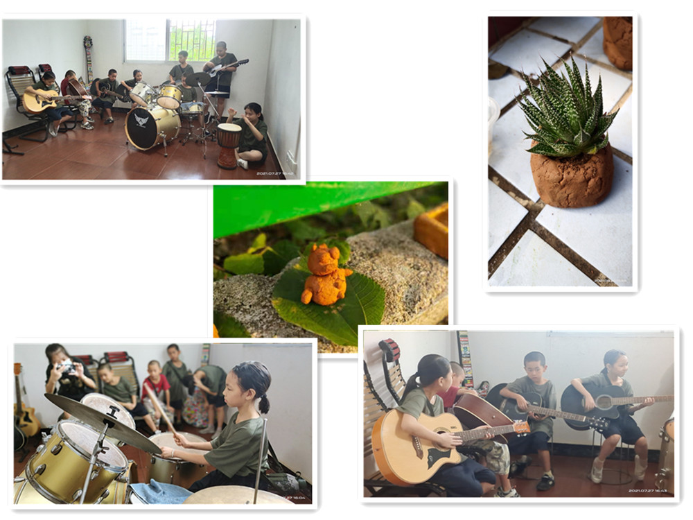 正知夏令营GLZZ的音乐课和泥巴课:孩子们都是天生的艺术家,无论是吉他还是架子鼓,孩子们拿起就能弹,随手捏的小泥人,小花盆binglingbingling闪着童趣灵气。