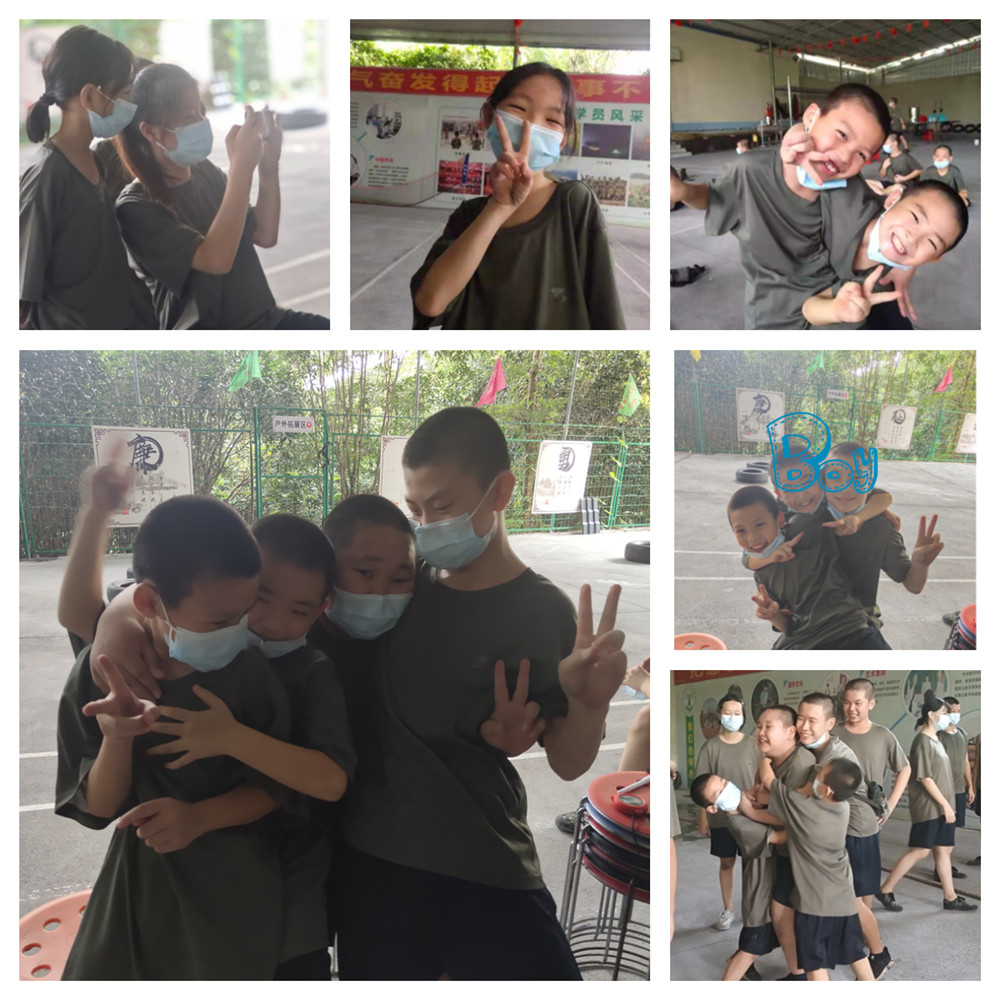 小弘来基地时候的体重是232斤,结营时候是205斤,小东来的时候是165斤,结营时是147斤,小覃来时是138斤,离开是是102斤,小泽来时是109斤,回家时是95斤,伴随着体重的变化,他们在饮食、行动灵敏度、礼貌行为上也发生了良好的变化。