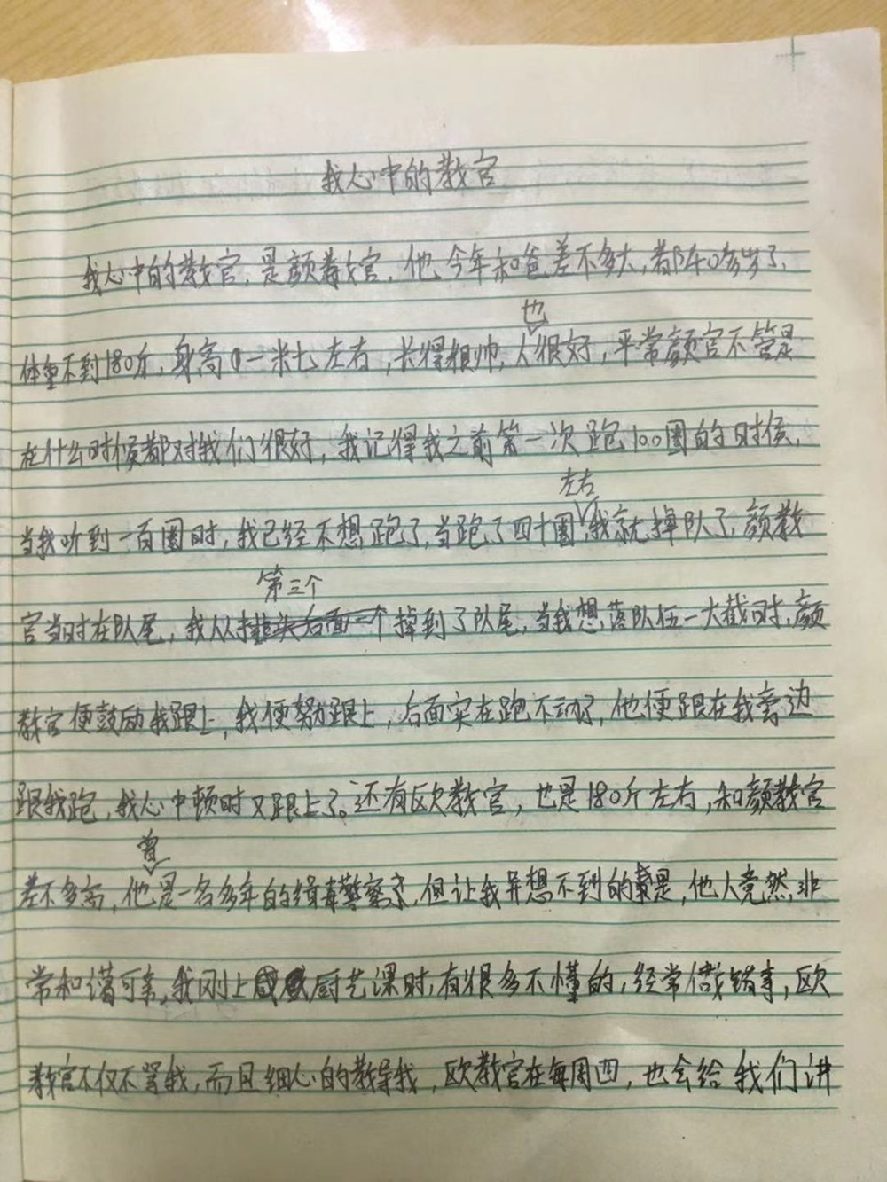 本周周记的题目是:《我心目中的教官》,是让孩子们写一写自己心目最好的教官的样子。