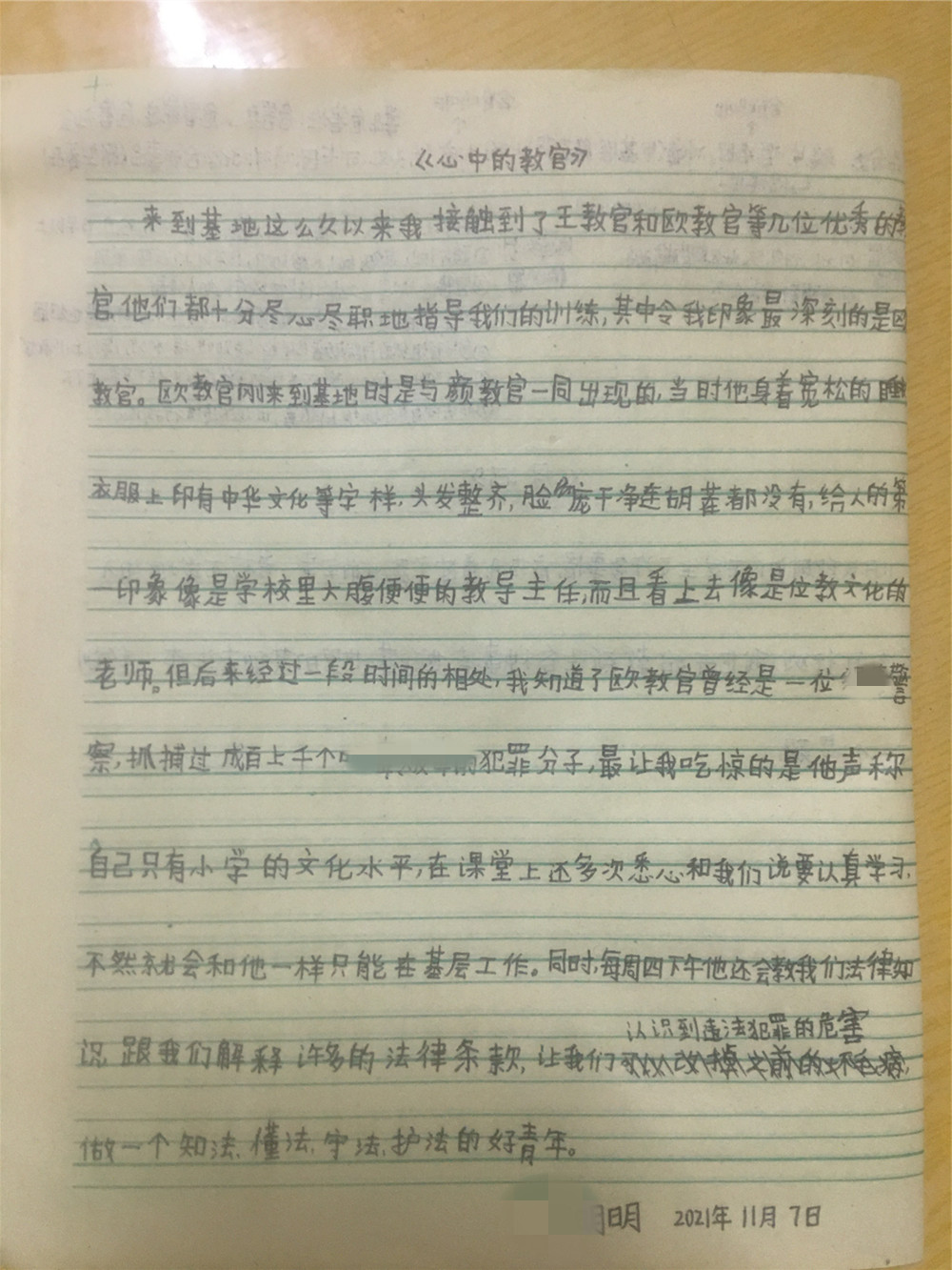 2021正知基地:周记《我心目中的教官》
