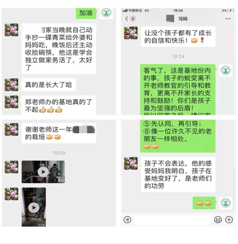孩子们的进步和转变更离不开家长的鼓励和深沉的爱。当孩子们在基地闹情绪的时候,当孩子们在适应期中各种问题爆发的时候,是家长们的信任和支持配合,使得基地的教学育化工作得以顺利实施,才能最终见证孩子的华丽蜕变。