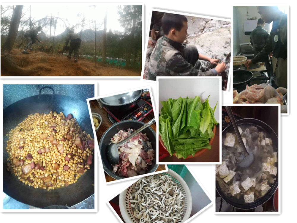 抓鸡,拔毛、洗切烹煮,在教官的指导下,孩子们轻松完成。一锅红烧肉焖黄豆,一锅母鸡汤配上豆腐、菌子、青菜,蒸汽氤氲中,年夜饭准备好了。