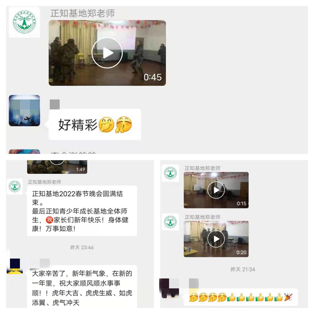 教官老师们同步将孩子们的表演视频发送给家长们观看,家长们纷纷表示:基地的春晚比电视台的春晚精彩。同时家长们也给基地师生们送上了热腾腾的节日祝福。