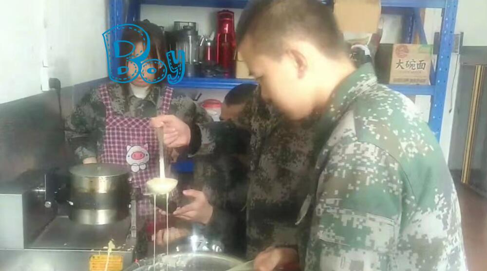 同时,厨艺小组的同学进驻厨房,开始准备晚上“五一”晚会的小吃、点心。今天的主角是“南瓜粑粑。”