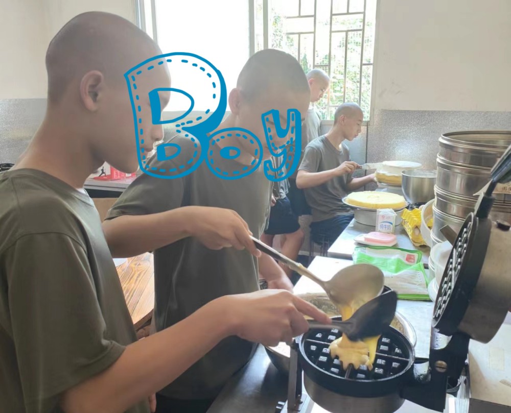 每个孩子刚开始对于做蛋糕,都觉得没有信心,不可思议,但是他们接触之后,发现只要细心一点,是可以做好的,在同伴和教官老师的鼓励下,孩子们都爱上了自己动手。