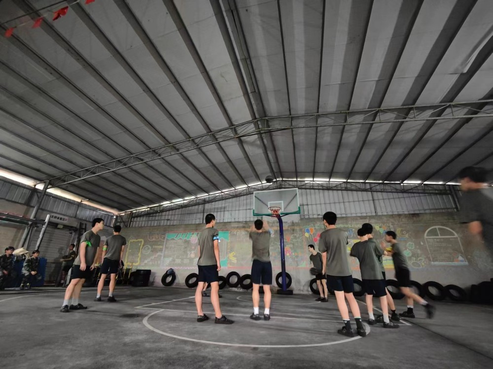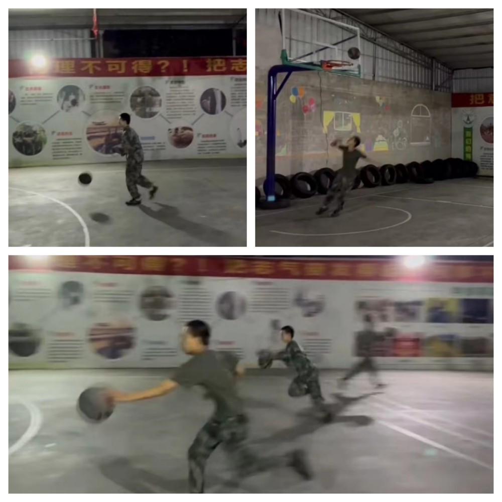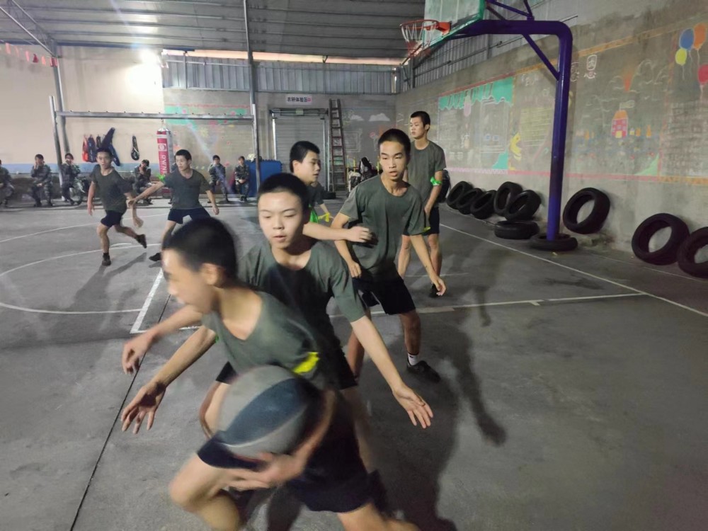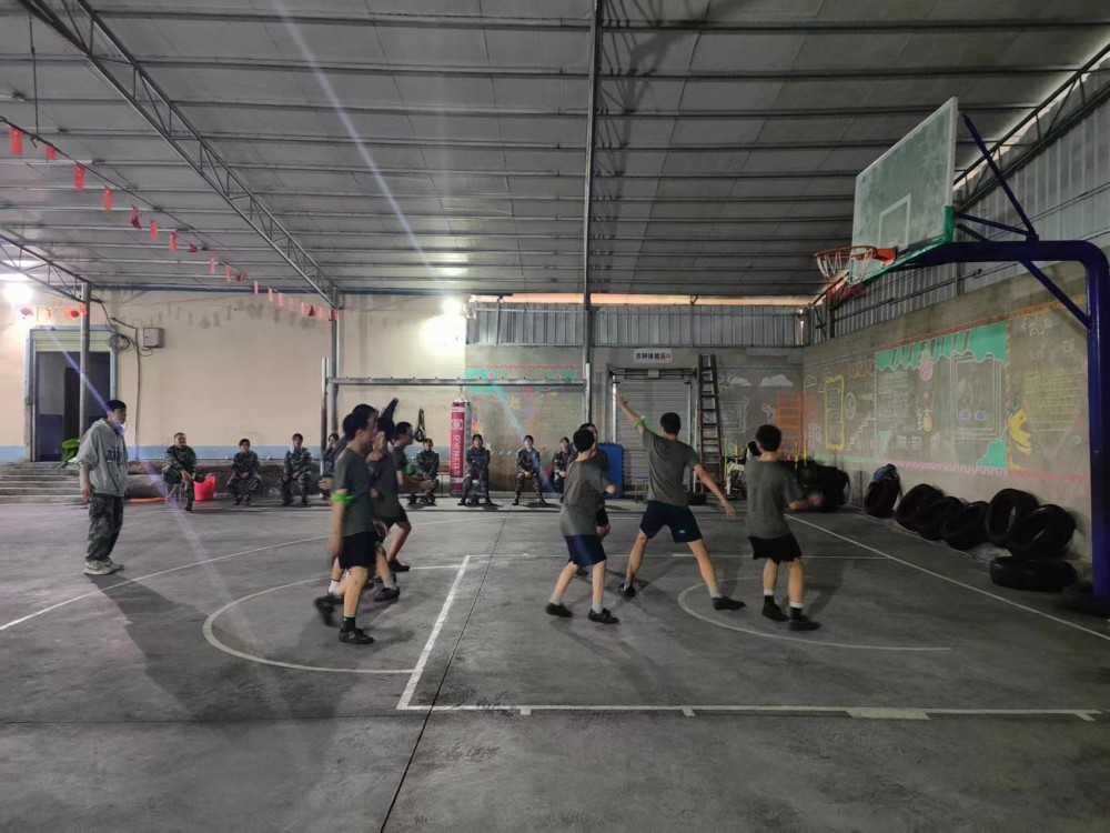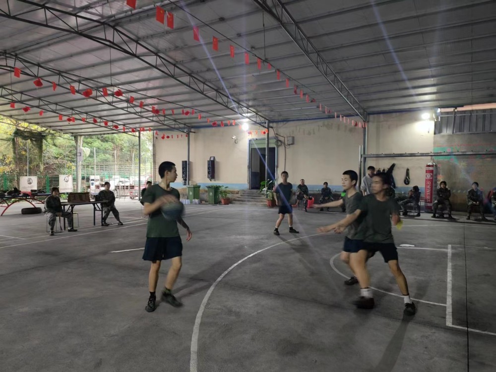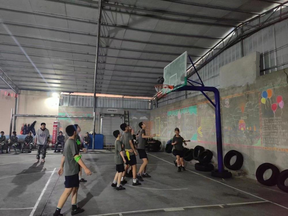 时间非常紧迫,孩子们只有一周的训练时间,还不能耽误平时的课程。陆教官只能利用每天《新闻联播》后——晚自习时间加班加点。挤出时间为队员们训练。从拍球到运球、运球到投球、三步上篮到配合演练……队员们都忘记了寒风,个个脸通红的享受着篮球的快乐。