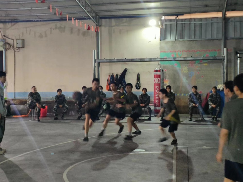 经过休整后,比赛继续,两边的队员磨拳擦脚,个个胸有成竹,旁边的拉拉队更是气势如虹,声嘶力竭地喊着加油,有几个嗓子都沙哑了还在喊着,这样的团队荣誉感让教官和老师很感动。
