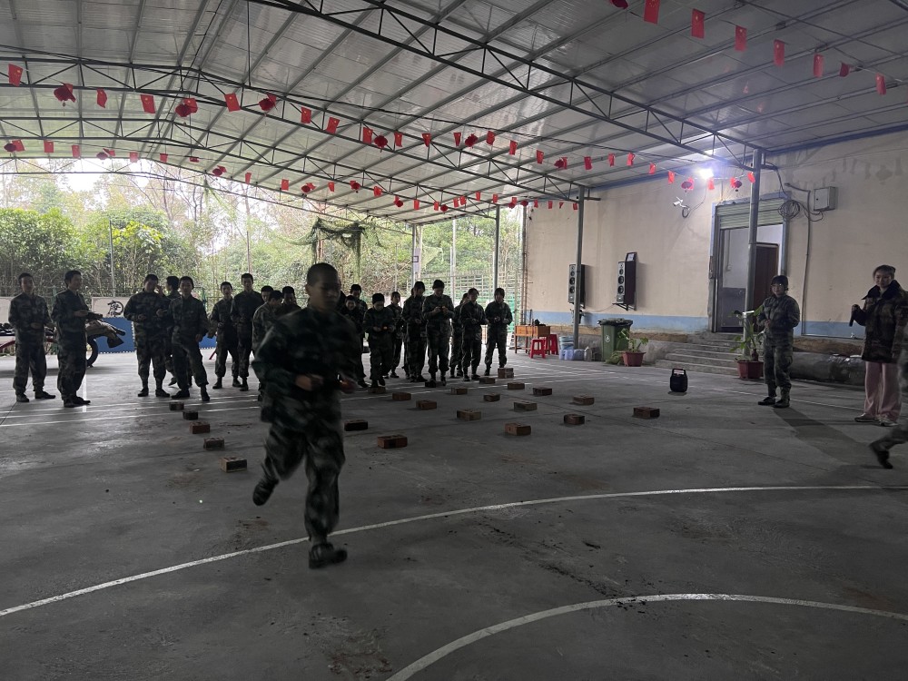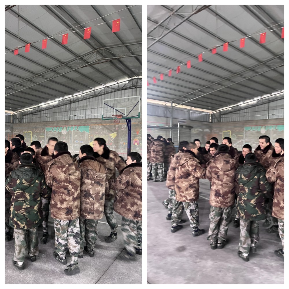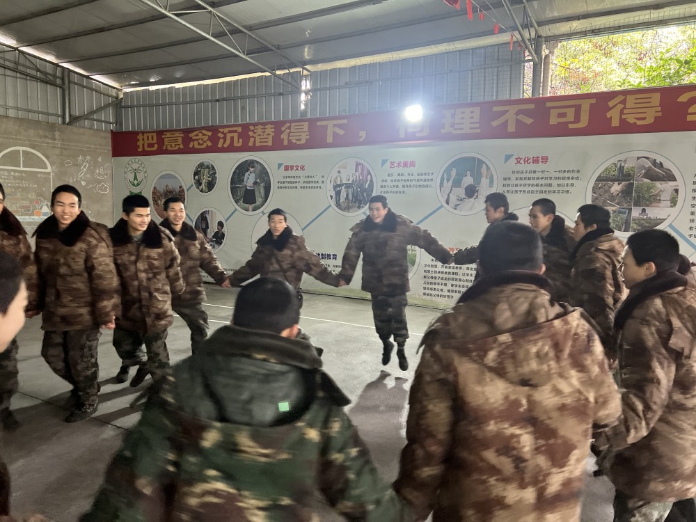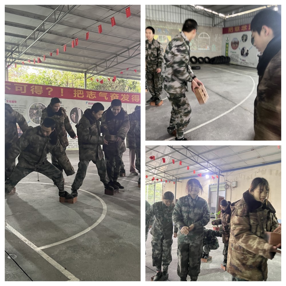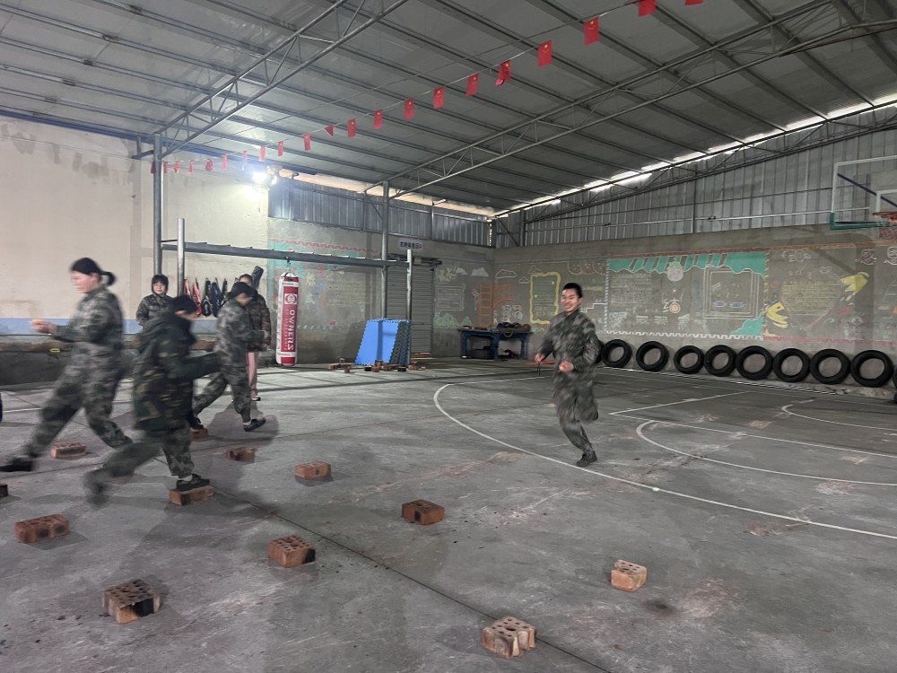 这考验了团队的合作力,分为几个小组,根据每个小组的人数多给一块砖,由后面的人把砖往前面递,看哪个团队走的最远,基地的小禧同学,充分发挥了自己腿长的优势,把一块砖扔得老远,这一跨步,瞬间把队伍跟其他组拉开了距离,其他组一边念叨着一边加快速度,谁知道下一步小禧扔砖的时候用力过猛,把砖砸烂了,一瞬间,大家都笑做了一团。