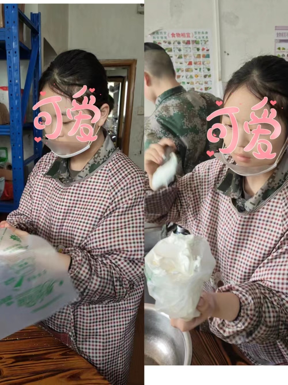或许是缘分的巧合,三月份生日的四个女孩子都是同一个宿舍的,情同姐妹的四个女孩子商量着要做出两个别具意义的蛋糕!下午时分,为了让孩子都能参与实践,把四个人分为了两人一组,每组制作一个蛋糕。