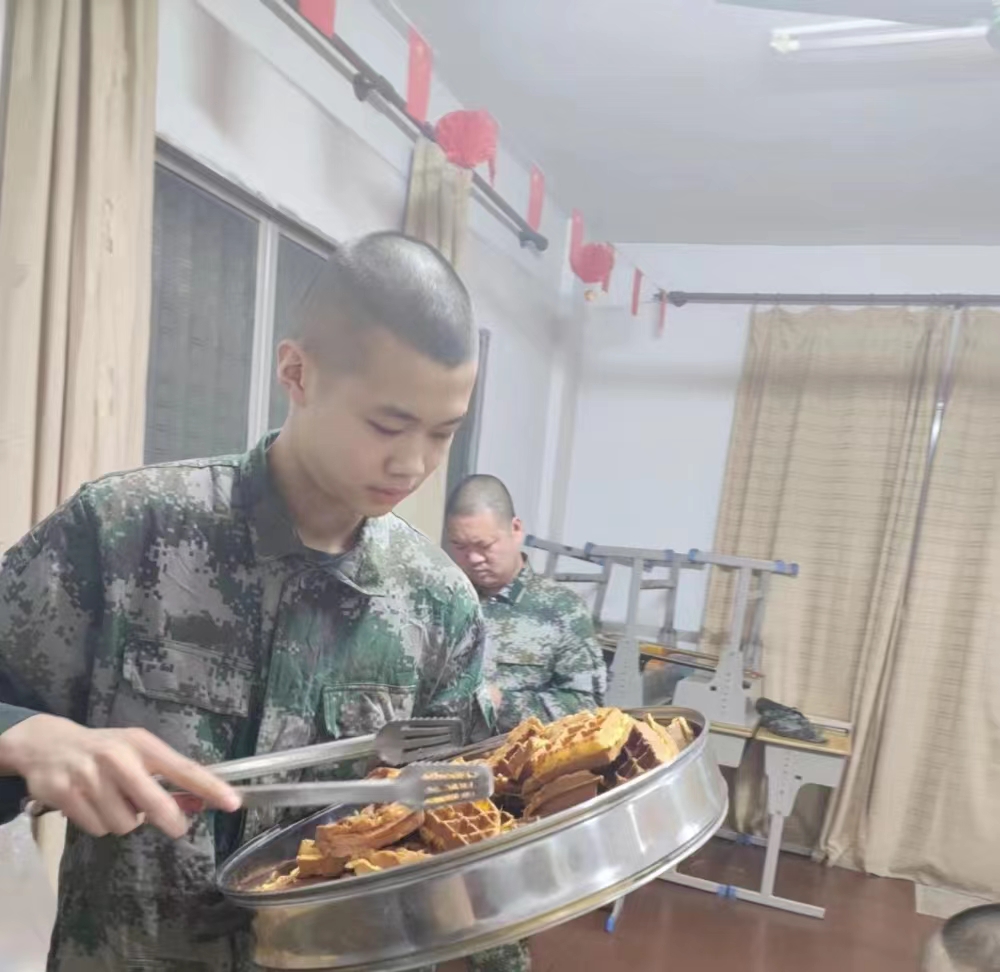 除了蛋糕,孩子们还做了香甜可口的华夫饼,刚来基地的小祥同学,尝了一块华夫饼,微笑着说:“嗯,很好吃!”大家对视一笑,就是对他的真挚欢迎。
