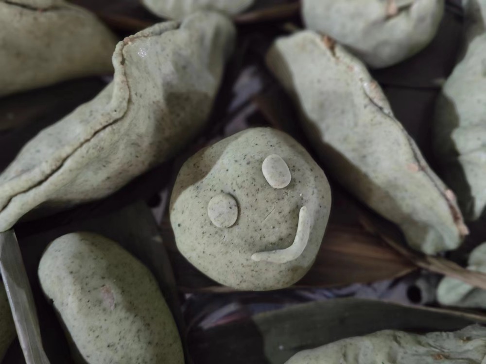 大家一边包青团,一边聊着以前在家里吃青团的趣事,许多孩子都表示很想念妈妈做青团、做粑粑的样子,他们还商量着,学会了做青团,等回到家,一定要做给家人尝尝。