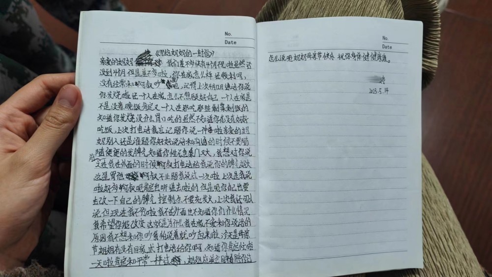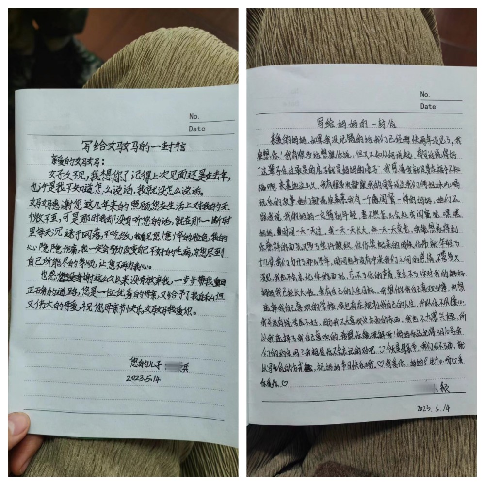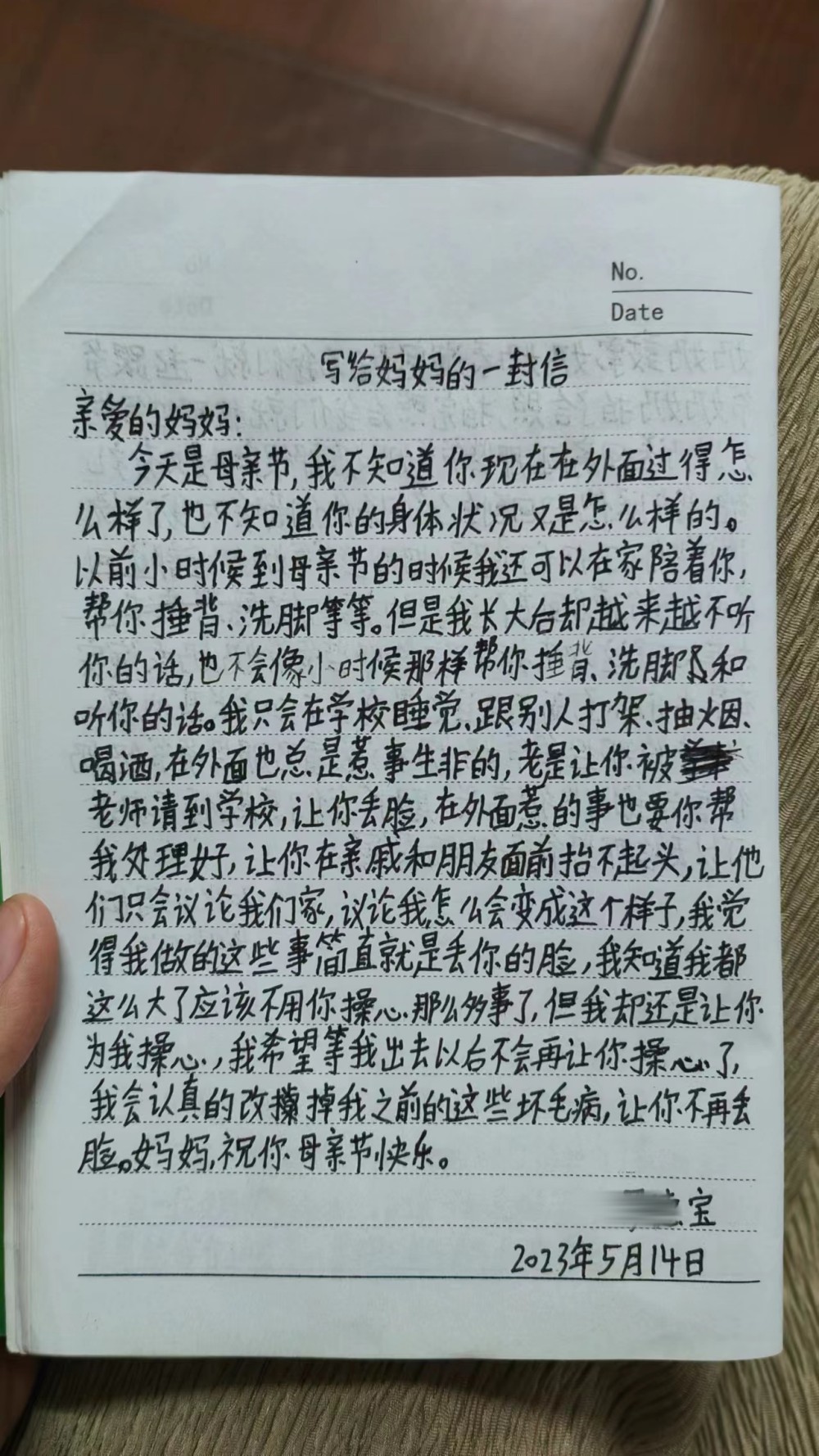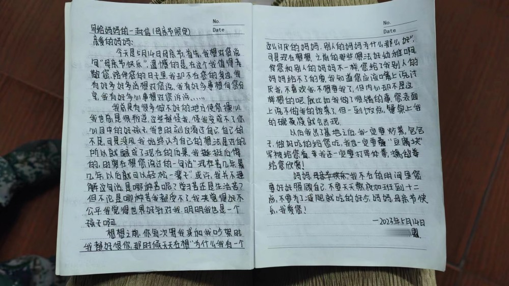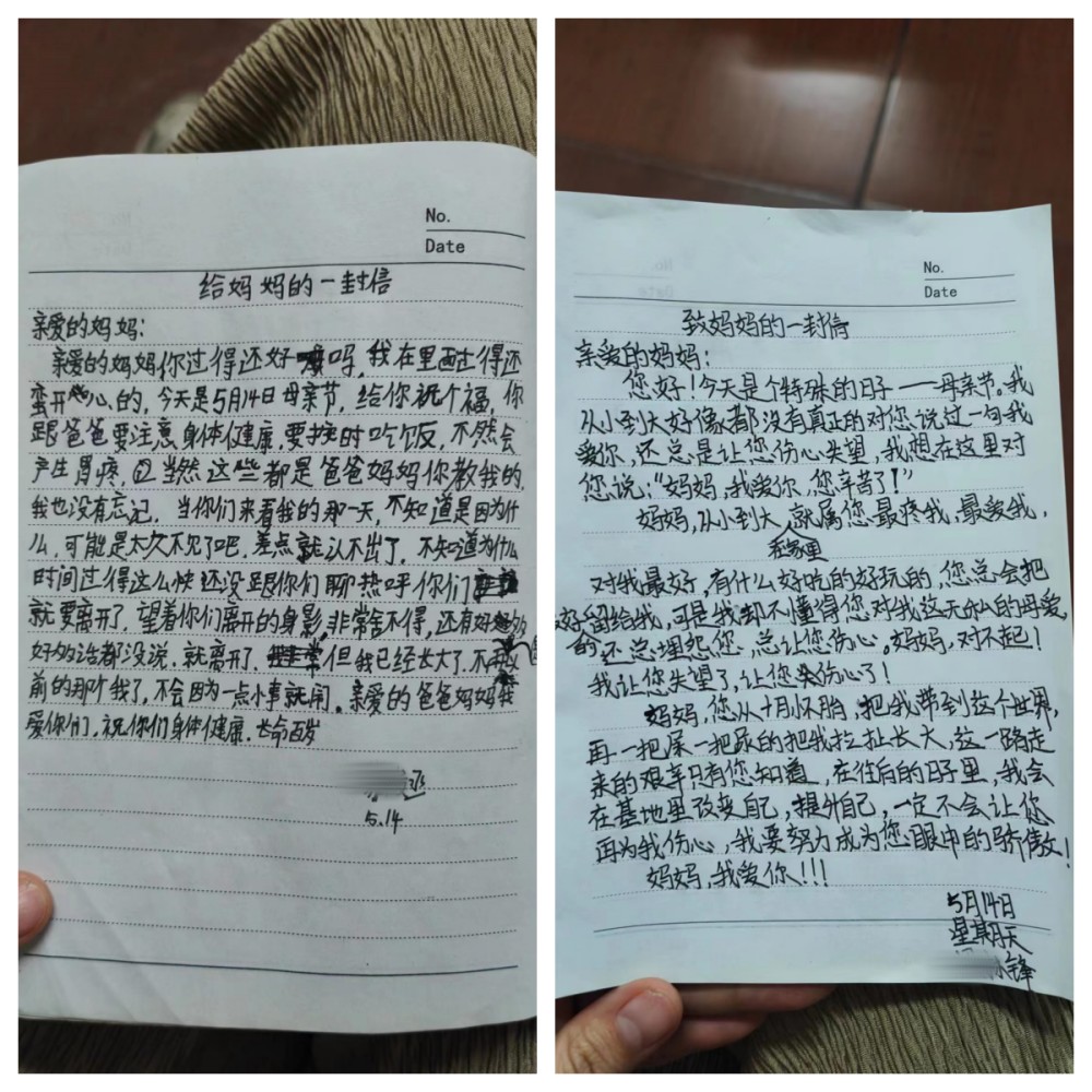 在这个特别的日子,教官让孩子们给自己的母亲写一封信,写下想对妈妈说的话,孩子们刚开始写的时候表情还有些扭捏,但一边写一边回想着跟妈妈的点点滴滴,他们脸上的表情越来越认真。