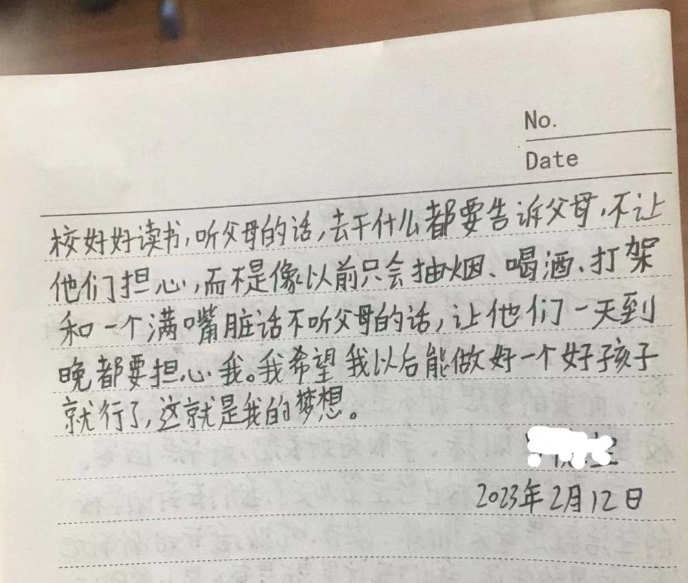 通过基地的学习和训练,让阿宝找回了自信。他的目标也从认真训练,早日回家和父母好好相处。升级为自己今后发展方向,要赚钱养活自己,回报父母,成为一个成功的人。